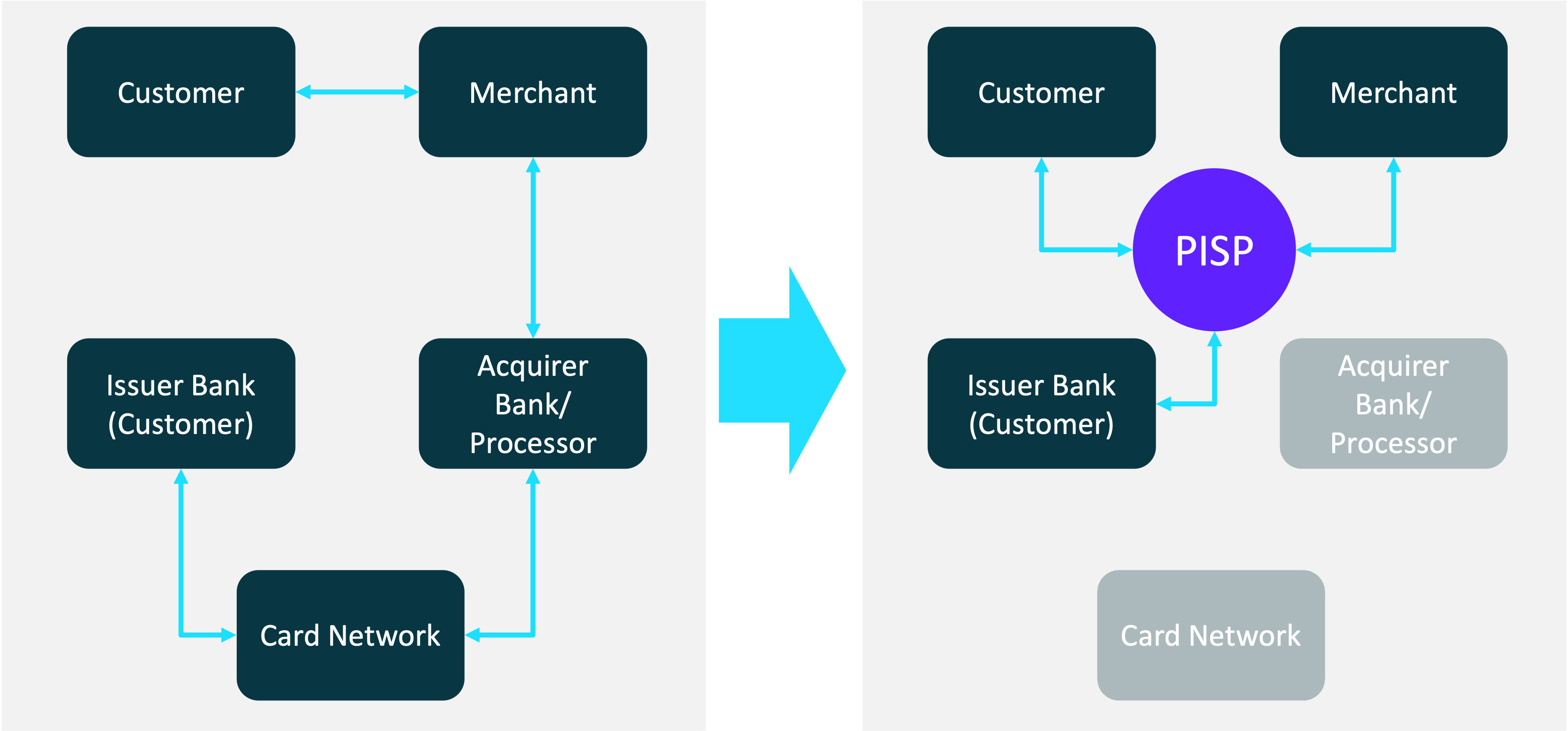 One of the most important implications is the way that the payments are processed. The need for an intermediary channel such as Visa, Maestro or Amex is eliminated, and the merchant can initiate the payment directly with the bank on behalf of the customer.
